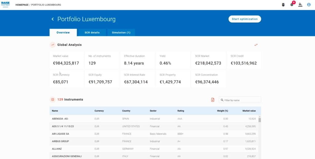 Run portfolio optimization on a large number of instruments and constraints on SCR, accounting, etc…